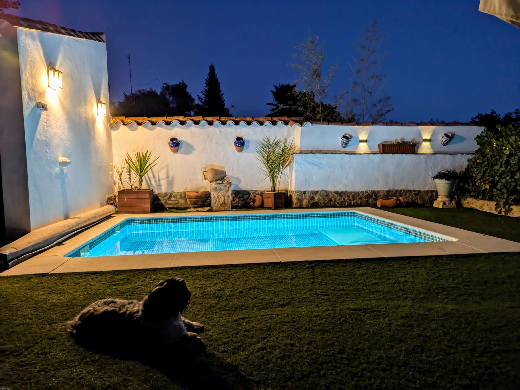 Podrás hacer barbacoa, paellas, relajarte en las tumbonas leyendo un buen libro, cenar viendo las estrellas a la luz de la luna y de la piscina iluminada.