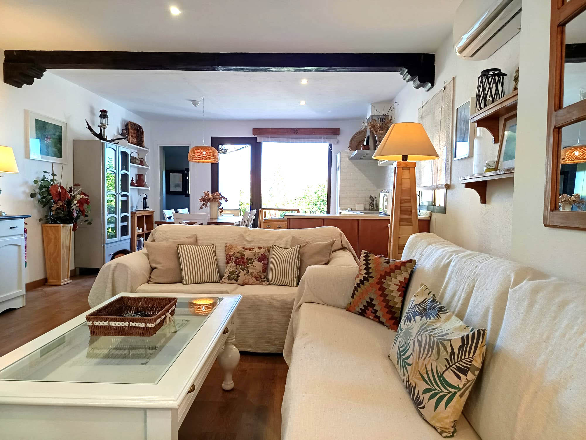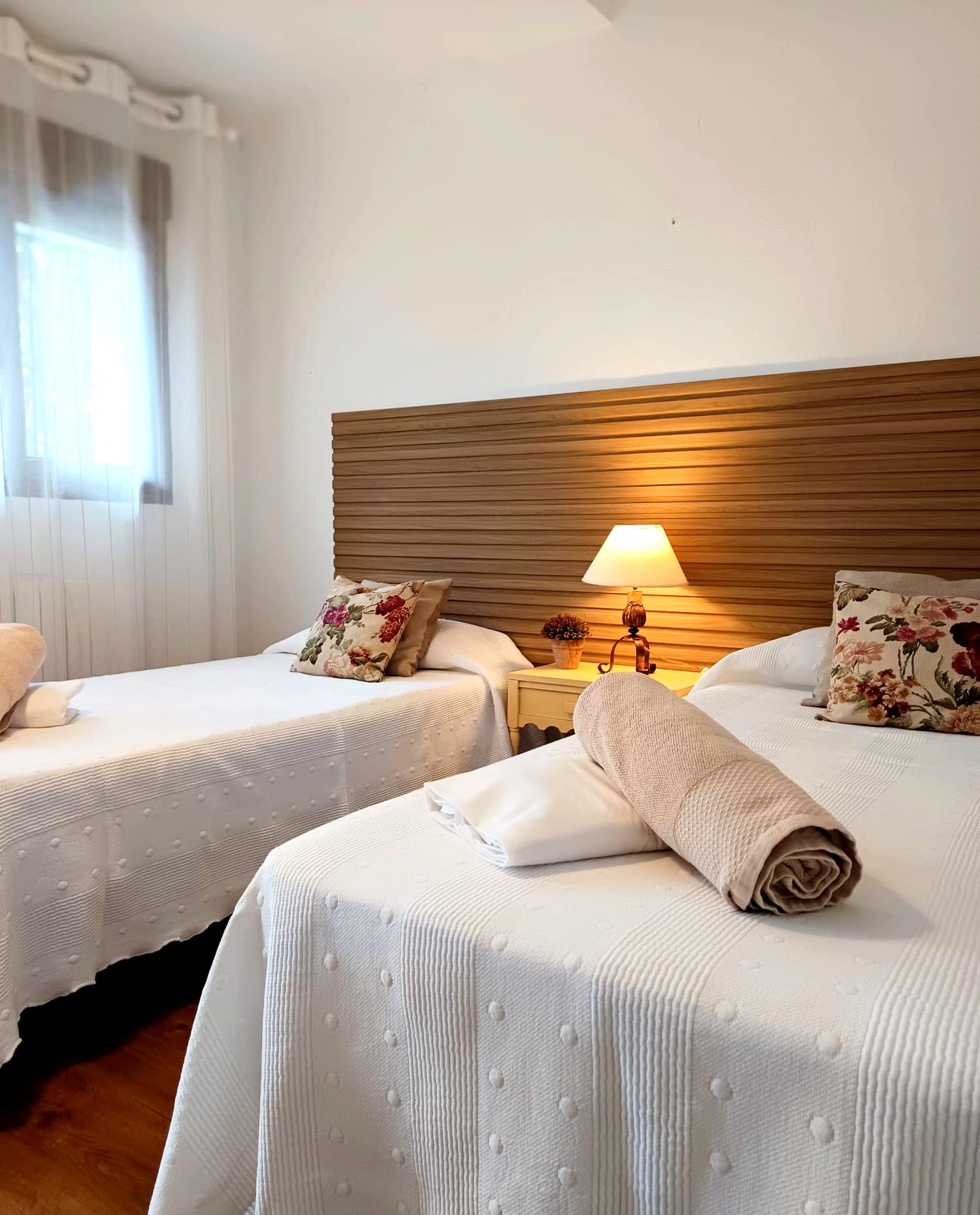 En la planta baja están los tres dormitorios, un baño con ducha y acceso directo al precioso jardín privado lleno de flores y con vistas a la sierra.